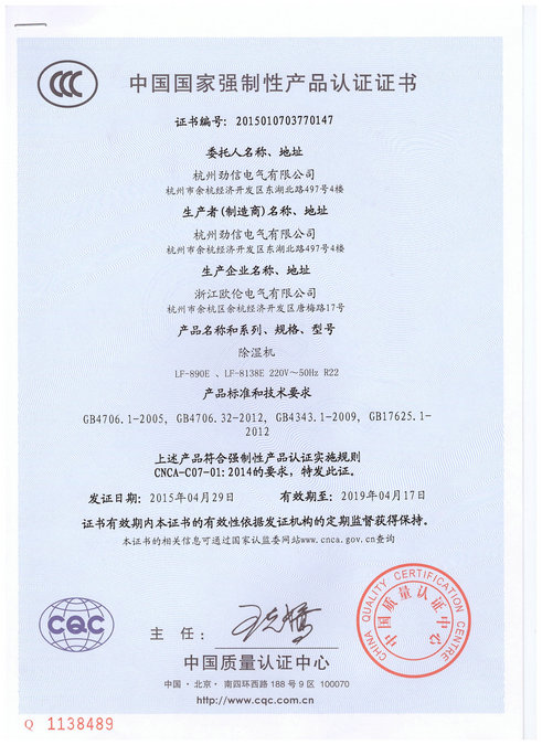 產品認證證書