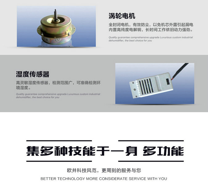 1. Microcomputer fully automatic control, real-time display of operating humidity, and can view the ambient temperature. < br / > 2. Humidity 5% RH adjustable, setting range 40% - 95% RH. It has the control function of timing off humidification and appointment opening humidification. < br / > 4. Perfect system fault automatic diagnosis function, better maintenance of the machine. The sole universal wheel is easy to move. < br / > 6. The system is equipped with a water level detection device, which has the functions of water shortage and full water alarm and shutdown, and overflow protection to realize safe water level operation. High, medium and low wind speeds are adjustable and can be freely selected according to needs. No compressor, no refrigerant, no pollution, efficient humidification, energy saving, environmental protection and low operating cost.