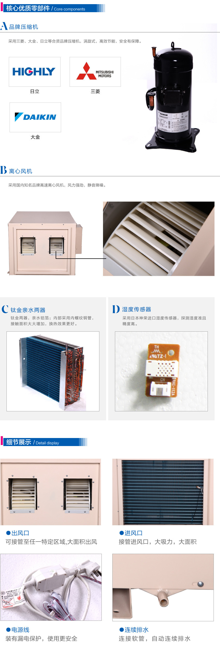 2.采用國(guó)際品牌壓縮機(jī),性能穩(wěn)定、除濕效果持久、強(qiáng)勁。